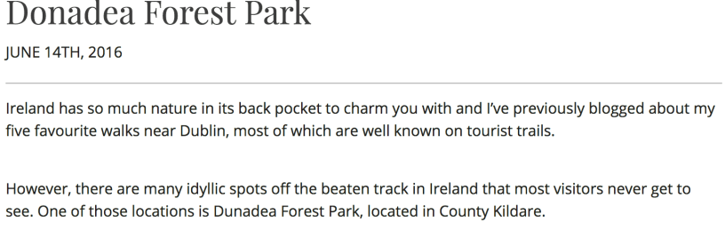 Travel RIT Vacations Date: 05/11/2016Author: Tadhg Peavoy 0 Comments Have been continuing to work on travel PR for Ireland’s leading tour company to the UKI region. Donadea Forest Park Share this: Click to share on X (Opens in new window) X Click to share on Facebook (Opens in new window) Facebook Like Loading... Related